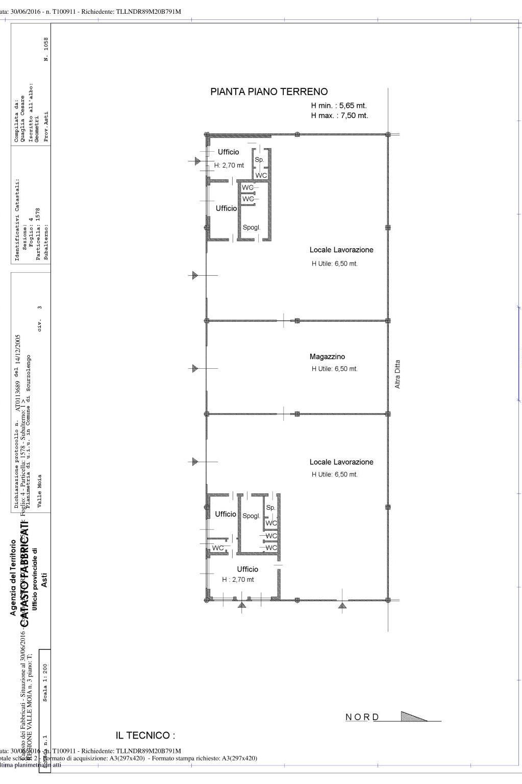 RECAP S.R.L. - Proponiamo in vendita Fabbricato artigianale/produttivo, costituito da 2 zone lavorazione separate dalla zona magazzino per un totale di 1000 mq ca, con annessi 2 blocchi ad uso uffici - spogliatoi - servizi igienici per un complessivo di 150 mq ca, ove presente impianto di riscaldamento (NO IMPIANTO DI RAFFRESCAMENTO) ; in aderenza al lato sud del capannone è stata realizzata una tettoia della superficie coperta catastale di mq 215.