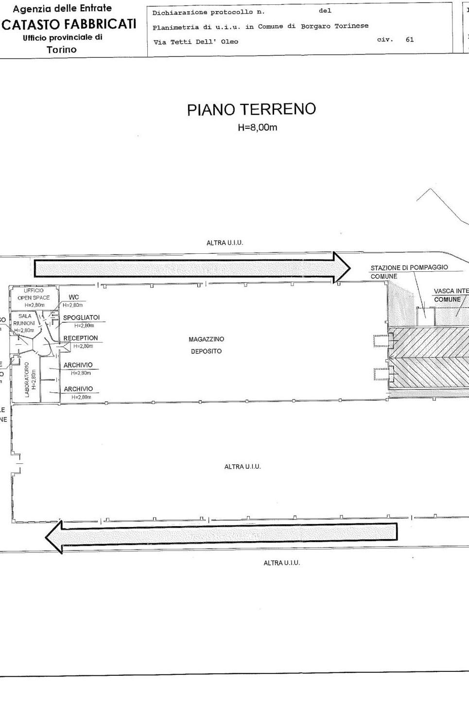 RECAP S.R.L. Proponiamo in locazione capannone di rappresentanza di 2.000 mq circa vicinissimo al collegamento della tangenziale nord di Torino, l'immobile cosi composto: area produttiva di 1.800 mq circa open space, con altezza interna di 8mt, un ingresso carraio laterale molto ampio comodo per il carico e scarico della merce, impianto elettrico a norma, impianto antincendio a norma con relativa stazione di pompaggio dedicata. Due baie di carico collocate nella parte posteriore del capannone su una superficie esterna asfaltata di 1.500 mq circa comodo per la movimentazione e lo scarico dei bilici. Ufficio di rappresentanza di 200 mq circa cosi composto: reception, sala riunioni, ufficio open space, sala archivi, spogliatoi dipendenti, sala break, sala laboratorio e servizi igienici.
